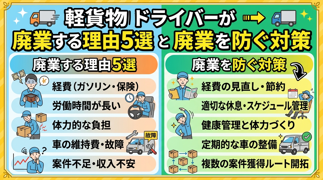 【2026年版】軽貨物ドライバーが廃業する理由5選と廃業を防ぐ対策|廃業前に試すべきこと