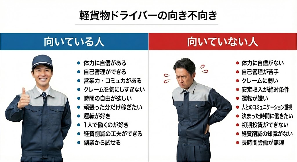 「軽貨物ドライバーって本当にきついの?」「やめとけって言われたけど大丈夫?」