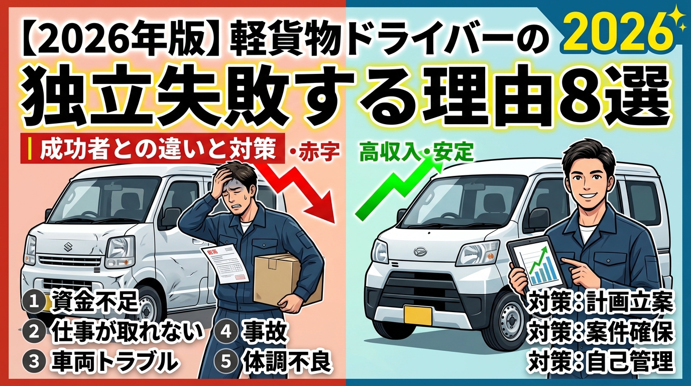 【2026年版】軽貨物ドライバーの独立失敗する理由8選|成功者との違いと対策
